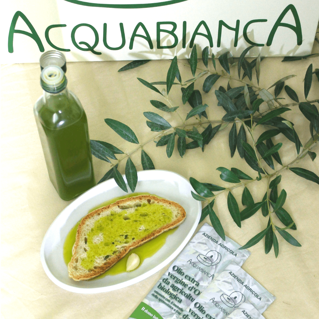 La “bruschetta”: pane comune cotto a legna, abbrustolito, sfregato con aglio e condito con olio extravergine di oliva, di cui esalta il sapore.