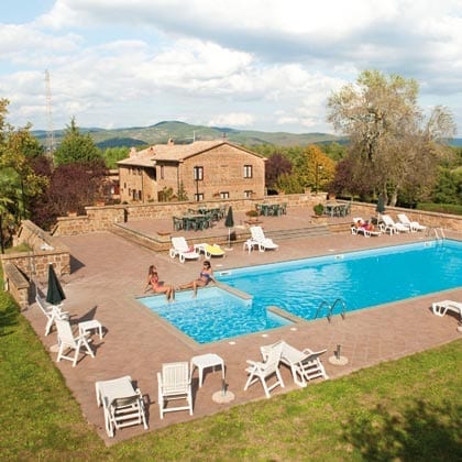 Struttura a gestione familiare completamente ristrutturata, con 10 camere dotate di tutti i comfort. Eccellente ristorazione, tipica dell’alta Tuscia, rinomata per le pappardelle al cinghiale. Giardino e piscina. Dependance all’interno della riserva N. Monte Rufeno nel Casale S. Antonio con 4 appartamenti.
