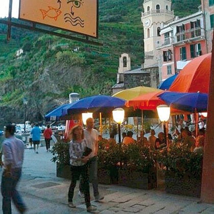 Arrivando dal mare, la piazzetta di Vernazza ci viene incontro allargando le braccia. Sbarchiamo, e il porticciolo dove già i Romani venivano a caricare le anfore di Vernaccia, sembra richiudersi su di noi per ripararci dai venti marini ed accoglierci dentro “u cantu de musse”, l’angolo delle chiacchiere: ancora così si chiama questo slargo dove, in faccia al Mediterraneo, la vita può ritornare alla sua dimensione più vera, quella dell’abbandono, della confidenza.