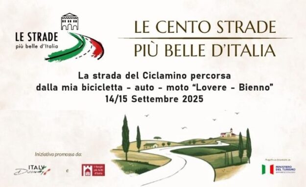 “LE STRADE PIÙ BELLE D’ITALIA”: inaugurata la Lovere-Bienno – “Strada dei Ciclamini”. Il 14 e 15 settembre 2025, a Lovere, è stata inaugurata la prima Strada del progetto “Le 100 Strade più belle d’Italia”, ideato da Italy Discovery insieme all’Associazione I Borghi più belli d’Italia, con il sostegno del Ministero del Turismo e il patrocinio…