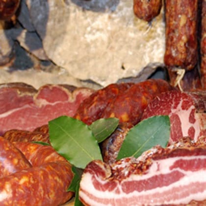 Dall’allevamento vengono carni e formaggi; salami e pancetta di maiale stagionati secondo antiche ricette.