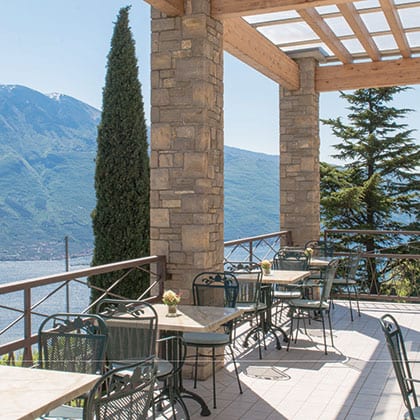 La fortuna, per il passeggero, è di arrivare quassù, dove il mondo dell’altopiano dialoga con il lago, e le atmosfere alpine incontrano quelle mediterranee. Pieve si trova sulla sommità di una falesia a 423 m. d’altitudine. Il Garda è a 65 m.: per secoli li ha uniti uno dei sentieri più belli del mondo, e dal 1913 una strabiliante strada, scavata nella roccia e a sbalzo su strapiombi, che un giornale tedesco dell’epoca definì “la più bella del mondo”. Le iperboli si sprecano per descrivere un posto così, cui fa difetto solo una maggior grinta contro le facili urbanizzazioni. Perché il carattere rurale, sostanzialmente conservato, non deve perdersi. L’antico selciato e le pietre annerite dei muretti raccontano ancora di uomini e baratti, di merci portate a spalla con fatica. Qui si va ancora in montagna a tagliare erba per gli animali, a far legna per il focolare. Tra lago e cielo, ci sono stalle, caseifici, attività agricole.