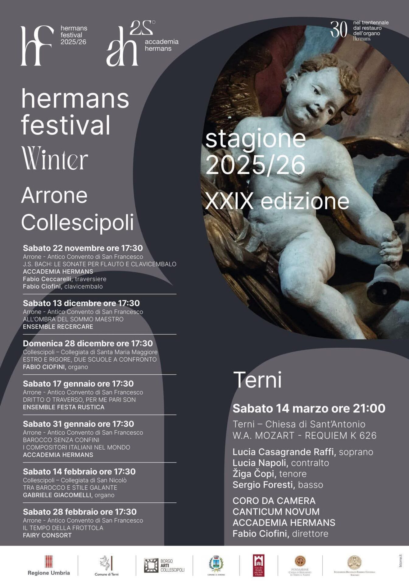 Hermans Festival – winter 2025/26 Un ricco calendario di appuntamenti dal 22 novembre 2025 al 14 marzo 2026 che si terranno a Collescipoli, a Terni