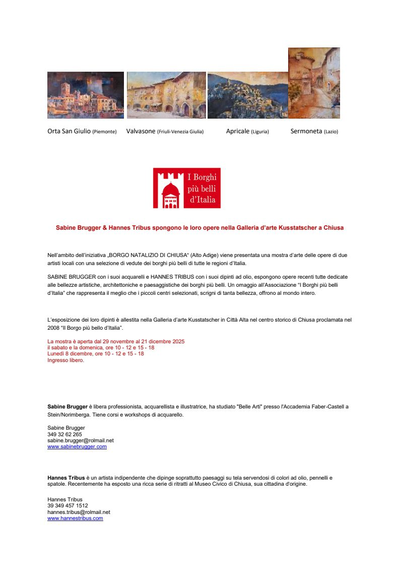202528nov(nov 28)0:0023dic(dic 23)23:59Chiusa KlausenIl Borgo Natalizio 2025 di Chiusa