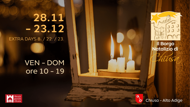 Quando le luci illuminano il centro storico e il profumo di vin brulè riempie l’aria, a Chiusa inizia il periodo più bello dell’anno: il Borgo Natalizio di Chiusa.