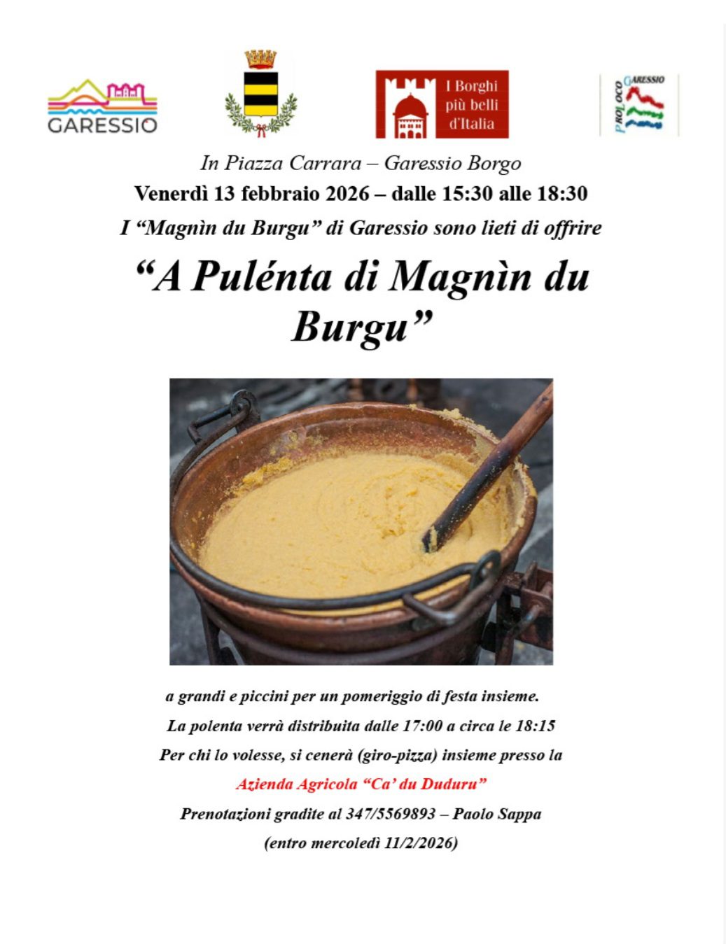 202613feb0:2123:59GaressioEventi dei BorghiPiemonte"A Pulenta di Magnin du Burgu" 2026