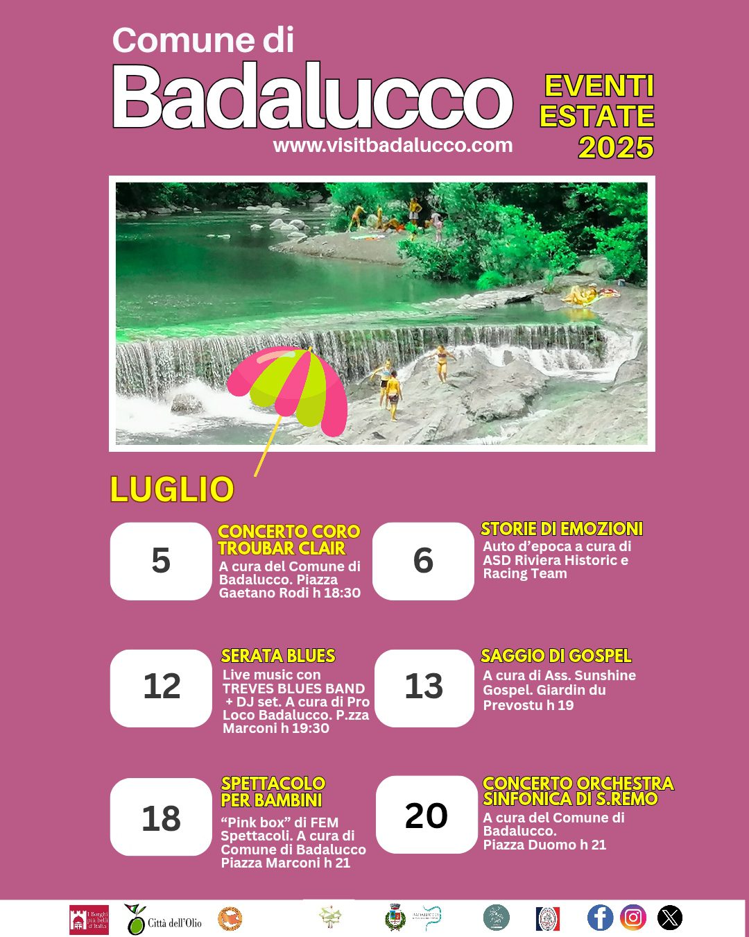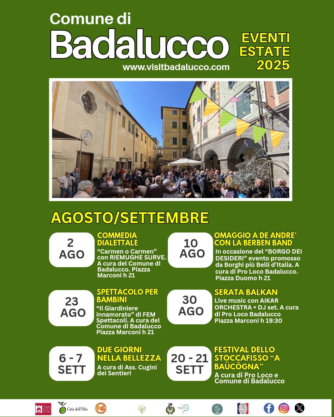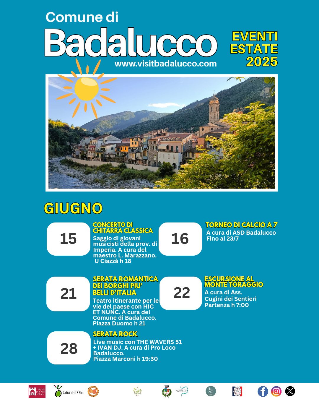 202515giu(giu 15)0:3521set(set 21)23:59BadaluccoEventi dei BorghiLiguriaCalendario Estivo Comune di Badalucco 2025