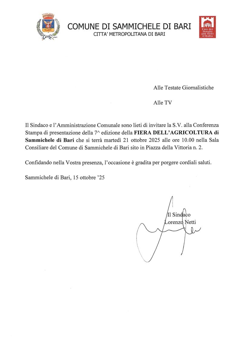 Conferenza stampa di presentazione della "7^ Fiera dell'Agricoltura di Sammichele di Bari"