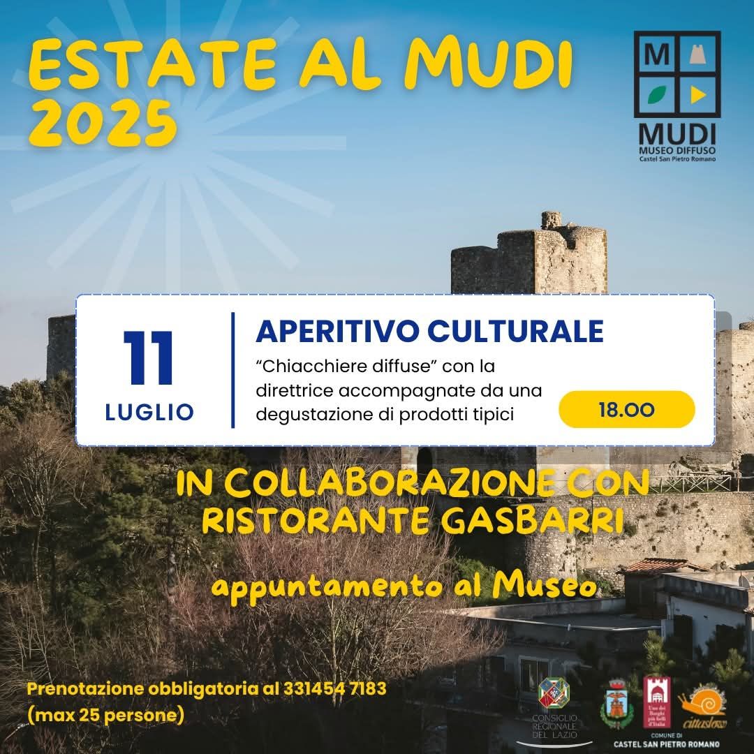 202511lug0:3123:59Castel San Pietro RomanoEventi dei BorghiLazioEstate al Mudi 2025 - Aperitivo culturale