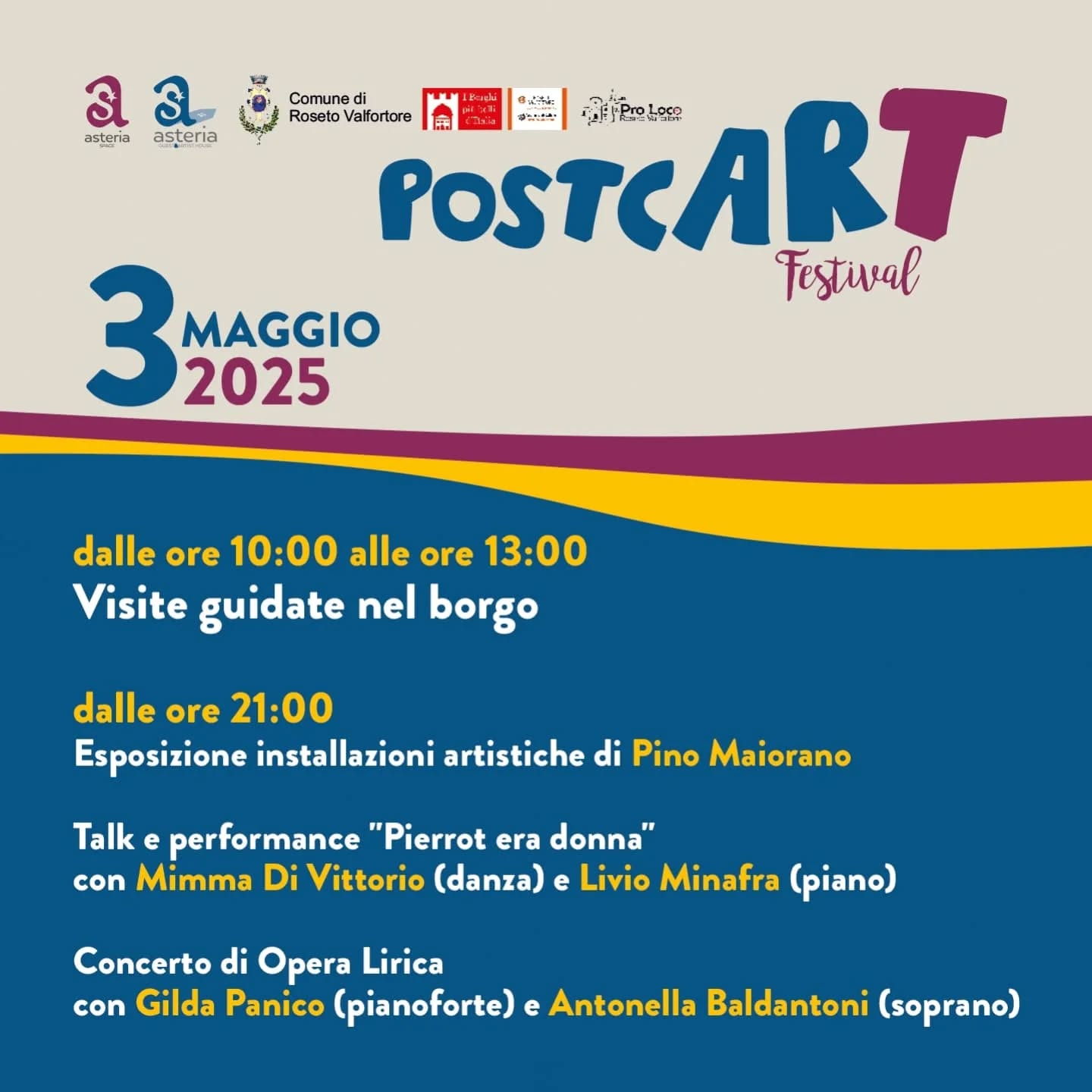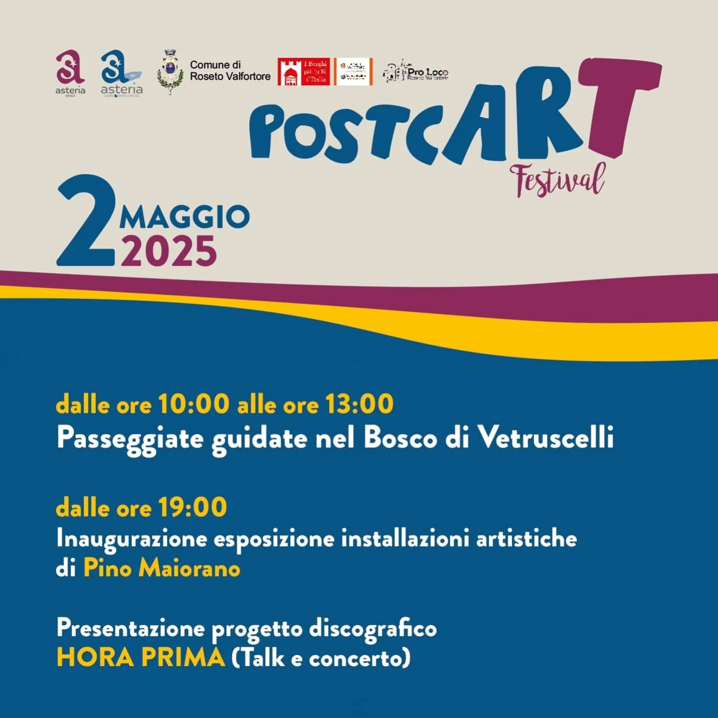 Venerdì 2 e sabato 3 maggio, Roseto Valfortore diventa palcoscenico di un evento che unisce arte contemporanea, natura, musica e tradizione. Si tratta del PostcAR..T Festival, la manifestazione che segna