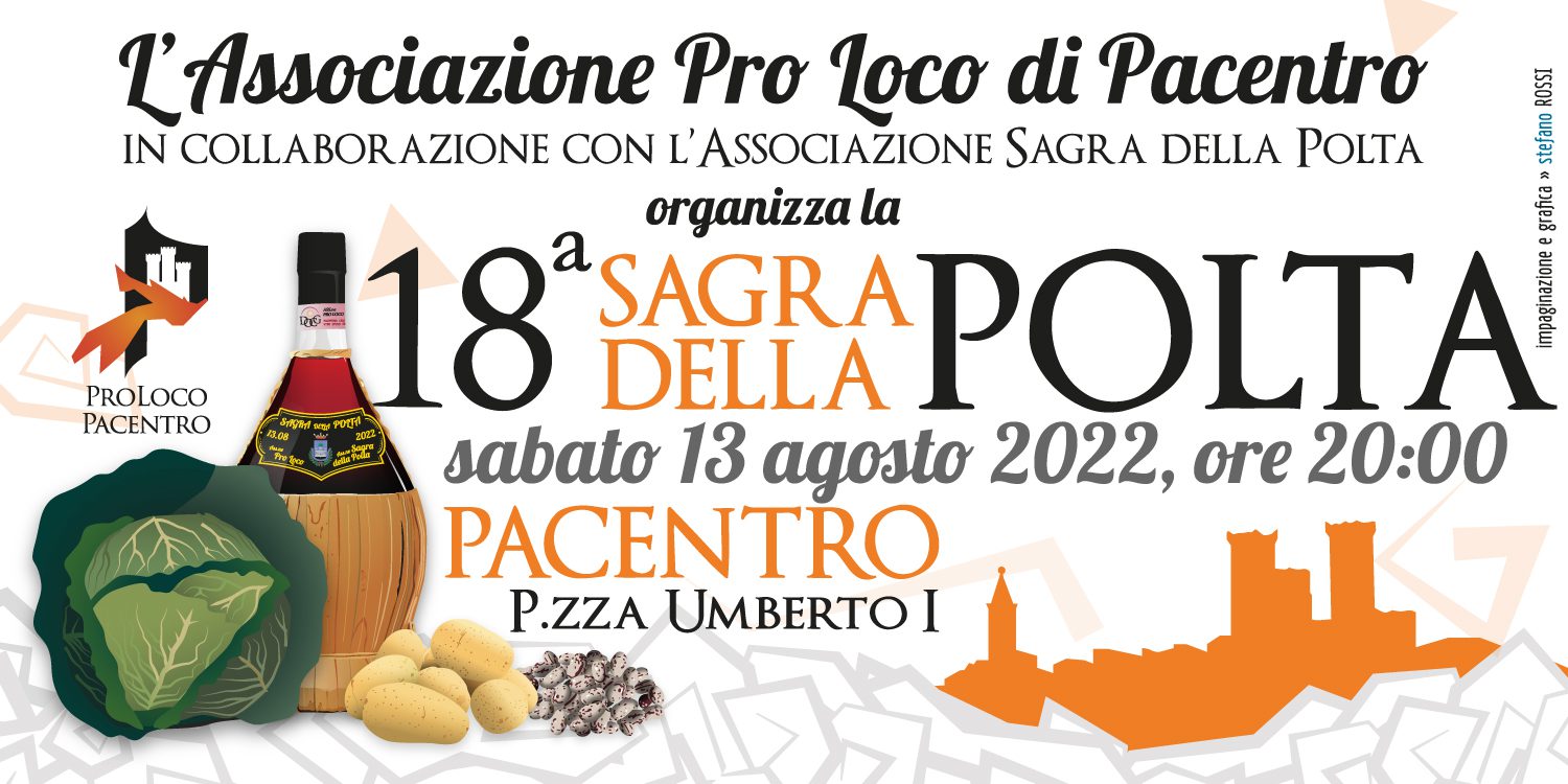 L’Associazione Pro Loco di Pacentro, in collaborazione con l’Associazione Sagra della Polta e con il patrocinio del Comune di Pacentro, organizza la 18^ SAGRA DELLA POLTA.