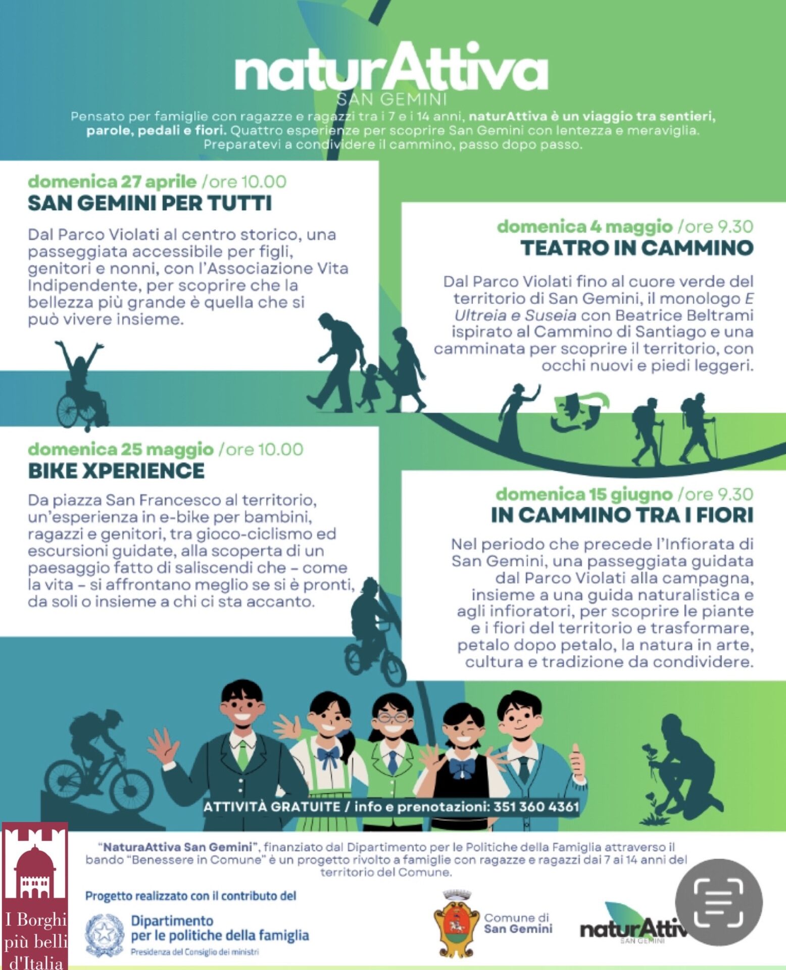 ๐ง๐๐ญ๐ฎ๐ซ๐๐ญ๐ญ๐ข๐ฏ๐ รจ il progetto del Comune di San Gemini pensato per vivere il territorio con occhi nuovi, attraverso esperienze da condividere tra genitori, figli e nonni.