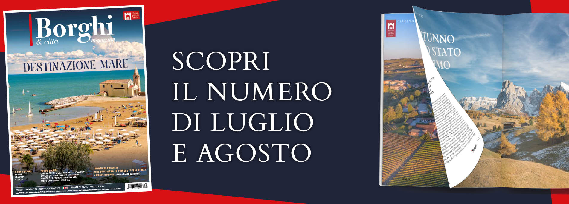Tropea, Castelsaraceno, Chiusa, Val d’Ultimo, Bressanone, Ossana, Portobuffolè, Asolo, Mel, Cesenatico