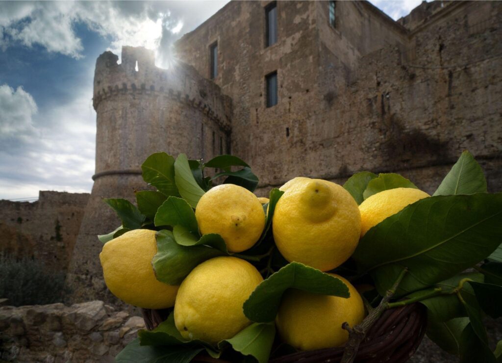 I limoni di Rocca Imperiale e di Albori: con il loro giallo brillante e il profumo intenso, i limoni sono simbolo della costa e del calore mediterraneo. Coltivati con cura e amore, essi non sono solo ingredienti, ma vere e proprie icone del paesaggio e della cultura locale, utilizzati per preparare dolci, liquori e piatti freschi che parlano di mare e sole.